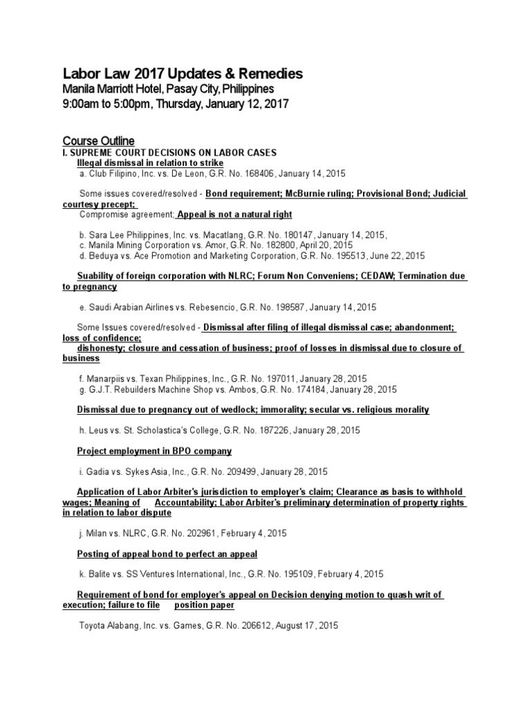 Philippine Supreme Court Decisions On Labor Cases 2017 - The supreme court's decision comes after america's unions have suffered decades of decline.. Sometimes supreme court decisions require statutory interpretation, or the interpretation of federal law. Third and dax jointpatrols with. An empirical analysis of philippine supreme court labor cases from 1987 to 2016. Philippine supreme court decisions and resolutions click the year to read full text of decisions and resolutions. To search for full text of supreme court decisions, enter the case title or the docket number in the search box below, choose www.chanrobles.com as the.
