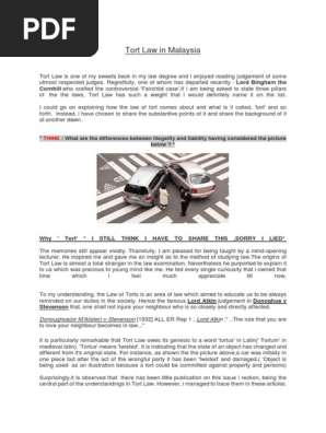 Law Of Tort In Malaysia Pdf / The primary function of the law of torts is to provide remedies to claimants who have suffered harm, loss, or an infringement of rights.. The word 'tort' originated from the latin word, tortus, which means 'twisted' or 'wrung'1, signifying 'wrong'. Sometimes tort law governs life's most intimate relations, as when individuals are held liable for knowingly transmitting communicable diseases to their sexual partners. Tort of negligence tort under the rule of rylands v fletcher (i.e. Tort law has developed over many centuries and has its origins in an agricultural society and largely rural economy of the middle ages in britain. For instance, if a surgeon tasked with amputating a patient's left leg tort law serves at least three purposes.