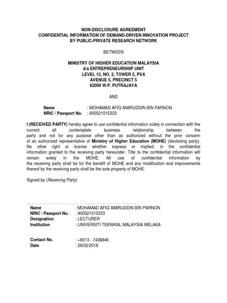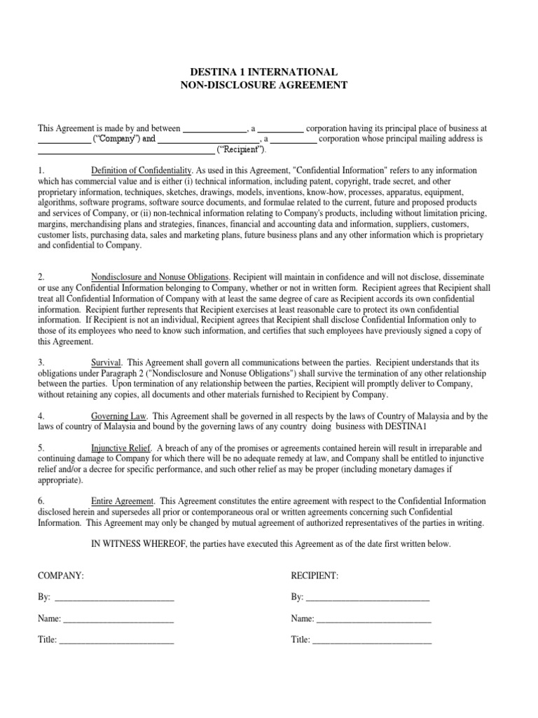 (usm and aaa shall hereinafter be collectively referred to as parties and individually as party, where the context so requires). In a nutshell, if you are asked to sign an nda, you are. An nda clarifies what will happen in case the. By signing an nda, the party who receives confidential information agrees to use the information only for permitted reasons and to keep. The tenderer hereby irrevocably and unconditionally consents to submit to the exclusive jurisdiction of the courts of malaysia for any actions, suits or proceedings arising out of or relating to this agreement.