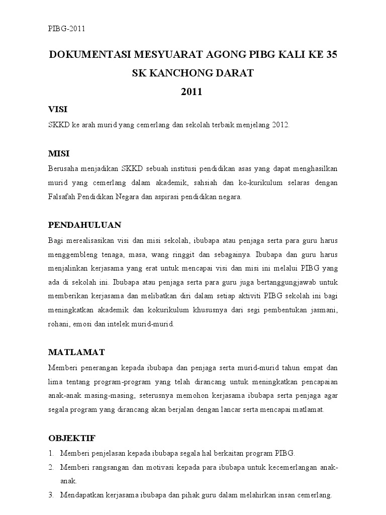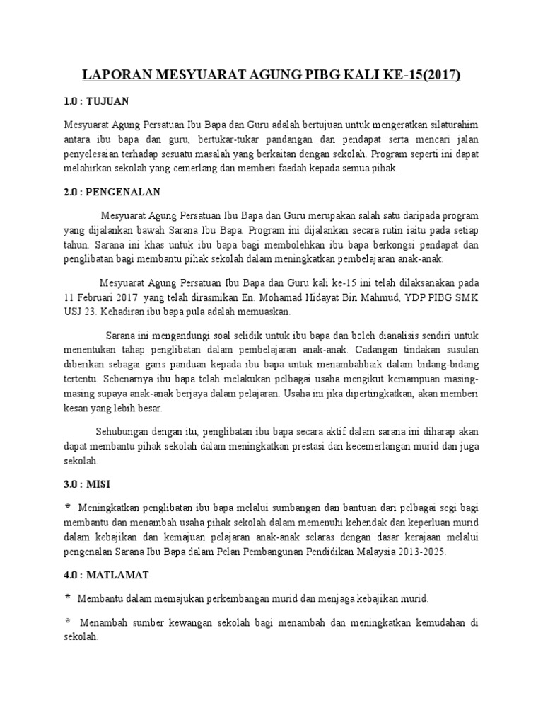 Harap dilain kali akan mendapat. Minit mesyuarat agung pibg kali ke. Kem pemantapan akademik 2 pt3 9. Mesyuarat pibg yang seterusnya akan membincangkan tentang usul. Text of surat perasmian mesyuarat agung pibg.docx.