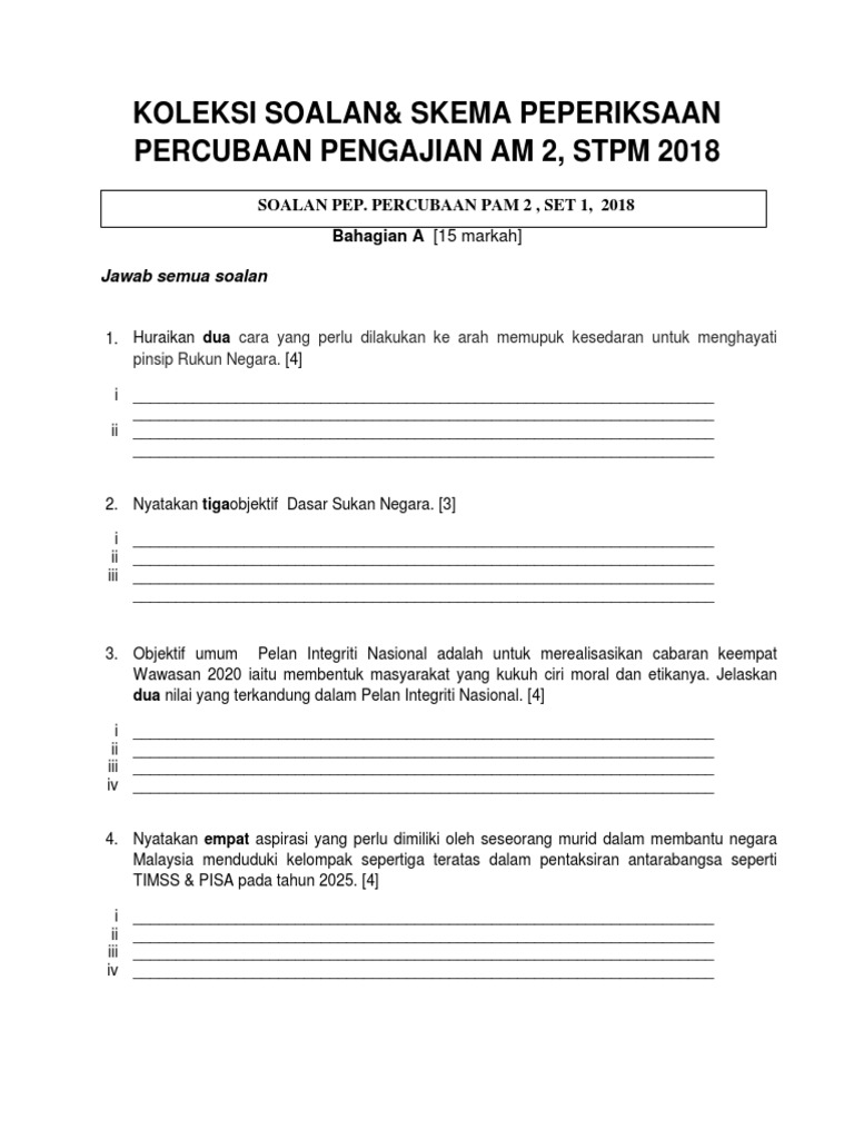 Mewujudkan suasana alam sekitar yang bersih dan menepati tahap piawaian kualiti pembentungan. Sila guna buku jawapan yang disediakan. Pengajian am penggal 3 : Pengajian am smk abdul rahim, kudat sabah. Dalam video kali ini saya akan berkongsi tentang pengajian am penggal 1. Tujuan bahagian ini adalah untuk menguji kefahaman calon tentang tanda simbol / papan tanda jalan raya. Pengkaji telah menggunakan menggunakan buku rujukan tersebut untuk mencari definisi mengenai campuran pemasaran. Bagi bahagian a, iaitu soalan nombor 1, 2, 3, dan 4, prestasi jawapan. Please copy and paste this embed script to where you want. Pendahuluan omalaysia terletak di hemisfera utara, iaitu bahagian utara dari garisan khatulistiwa. Ia juga memudahkan calon stpm untuk memahami subjek ini. Bahagian ini untuk menguji kebolehan calon mengalih bentuk komunikasi daripada bentuk bukan linear ( jadual, graf atau carta) kepada bentuk linear dan mengutip maklumat daripada data. Pengajian am hitamkan jawapan anda 1.
