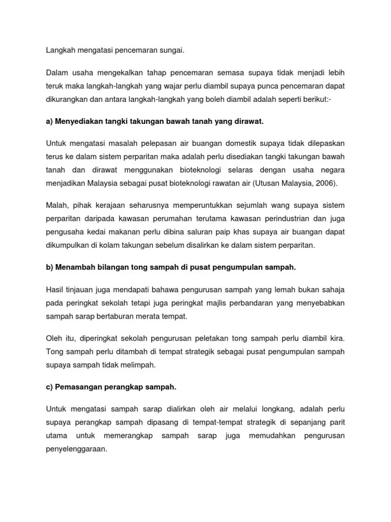 Cara mengatasi pencemaran air perlu diketahui karena air adalah salah satu elemen penting dalam kehidupan. Antaranya jangan gunakan beg plastic kerana ianya memakan masa beratus tahun untuk. Karena tanah yang tercemar akan mengandung bakteri penyebab penyakit. Langkah mengatasi pencemaran alam sekitar mp3 & mp4. Lembaga tersebut memberikan cadangan yang berharga bagi perkembangan hukum alam sekitar.