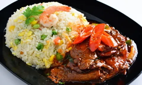 Nasi Putih Ayam Masak Merah : Sajikan hangat dengan nasi putih.